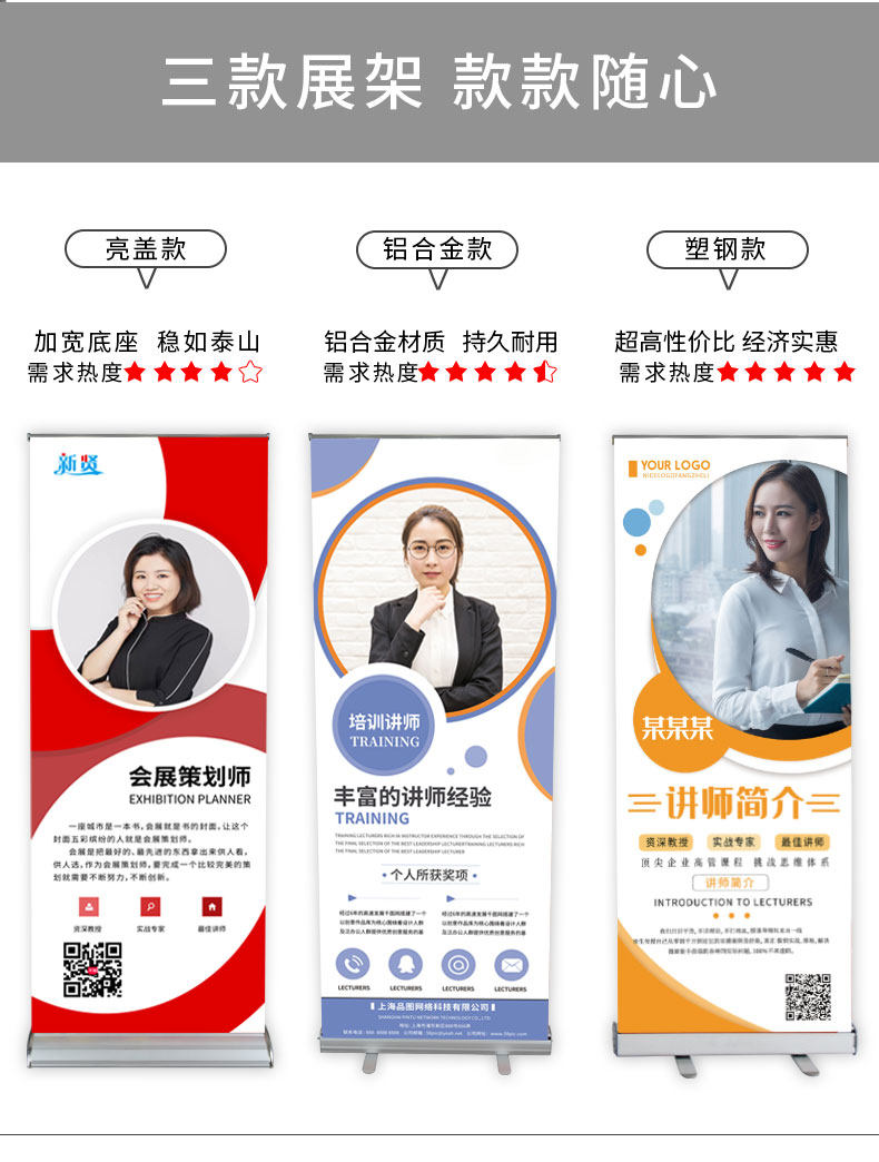 易拉宝展示架定制伸缩展架立式落地式广告牌展示牌设计海报制作