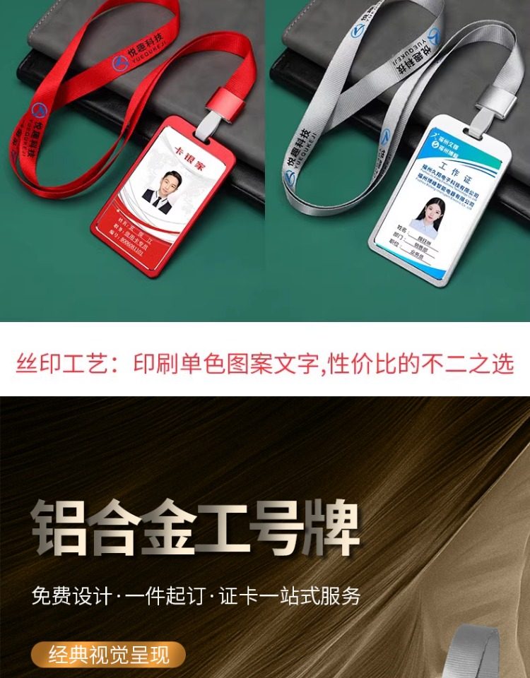 铝合金工牌定制员工工作牌胸牌挂绳定做工号牌卡套工作证名牌订制